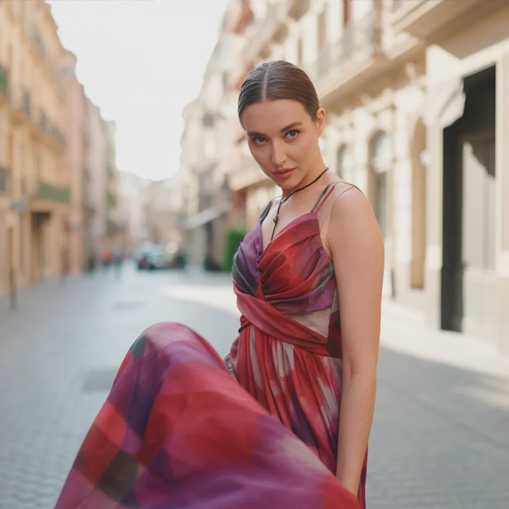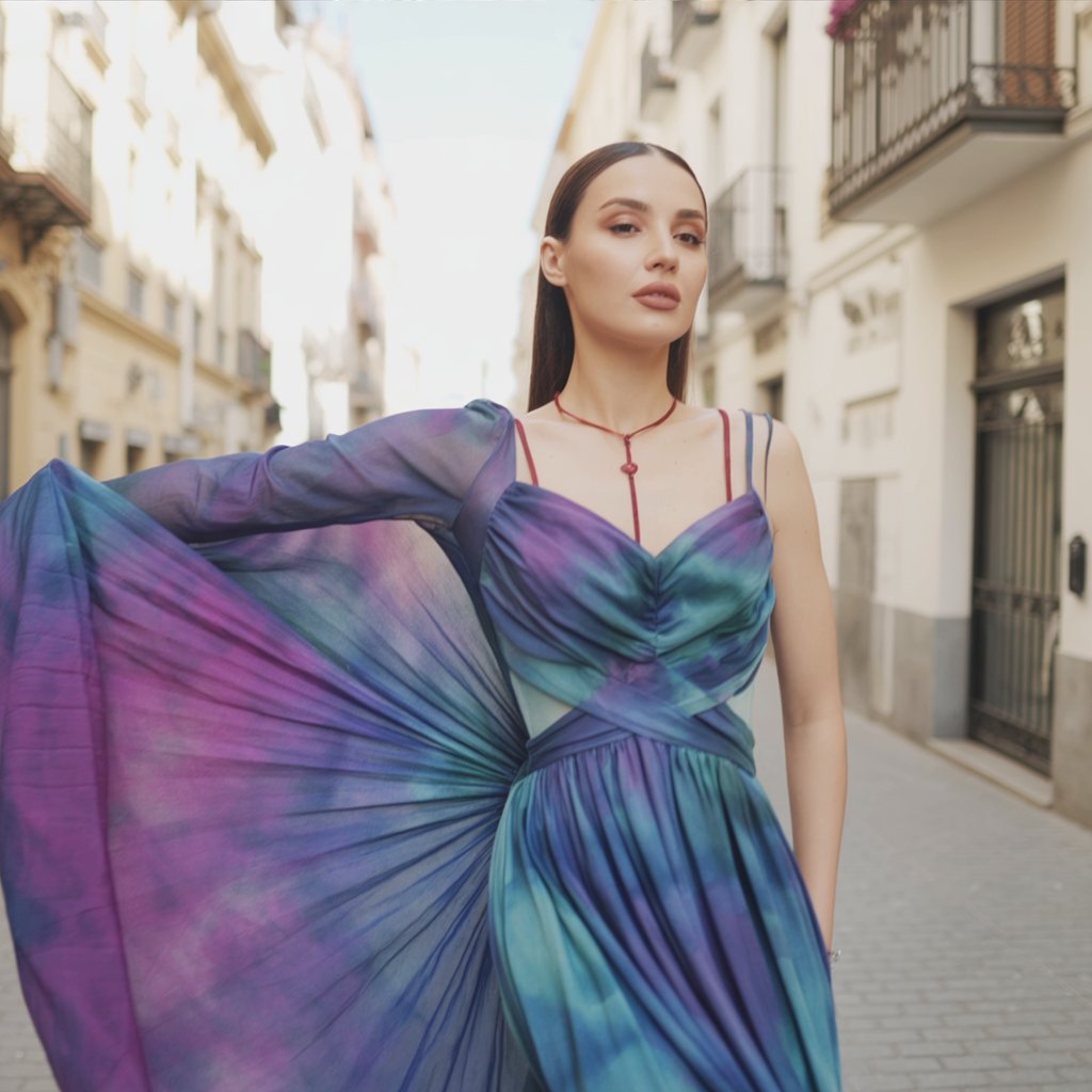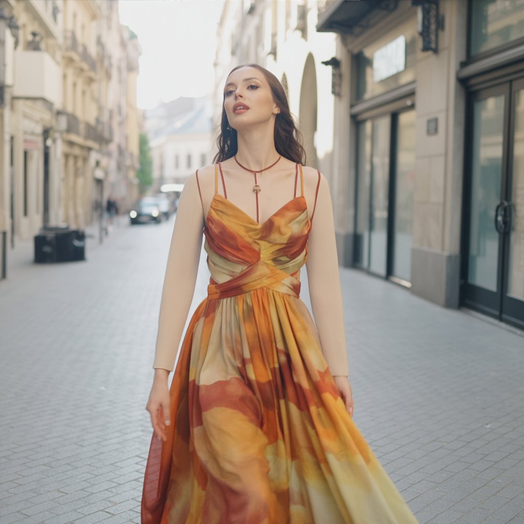 Tauche ein in pure Raffinesse mit dem Aelwena – Träger-Ombre-Maxikleid , das zarte Eleganz mit modernem Stil verbindet. Mit seinem schmalen Wickelausschnitt, fließenden Lagen und feinen Trägern zaubert dieses Kleid eine feminine Silhouette mit traumhafter Leichtigkeit – ideal für Gartenfeste, Sommerabende oder stilvolle Urlaube.